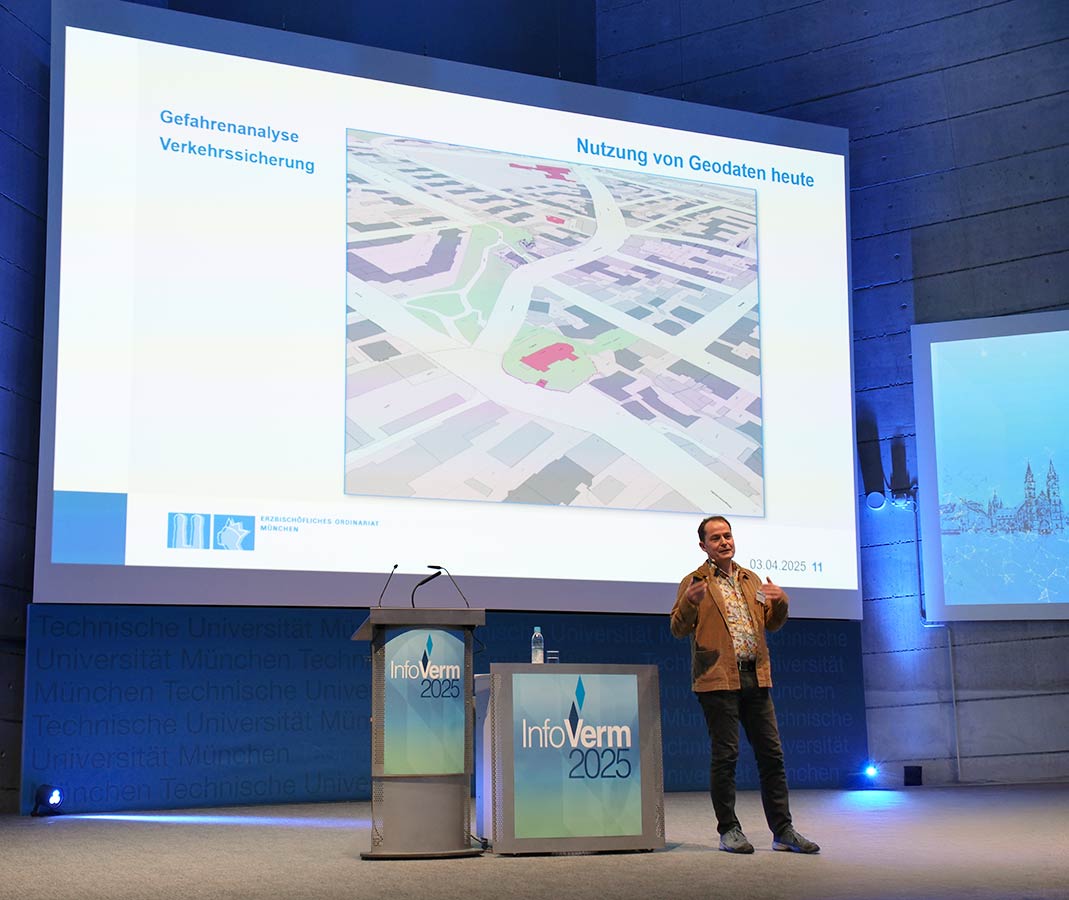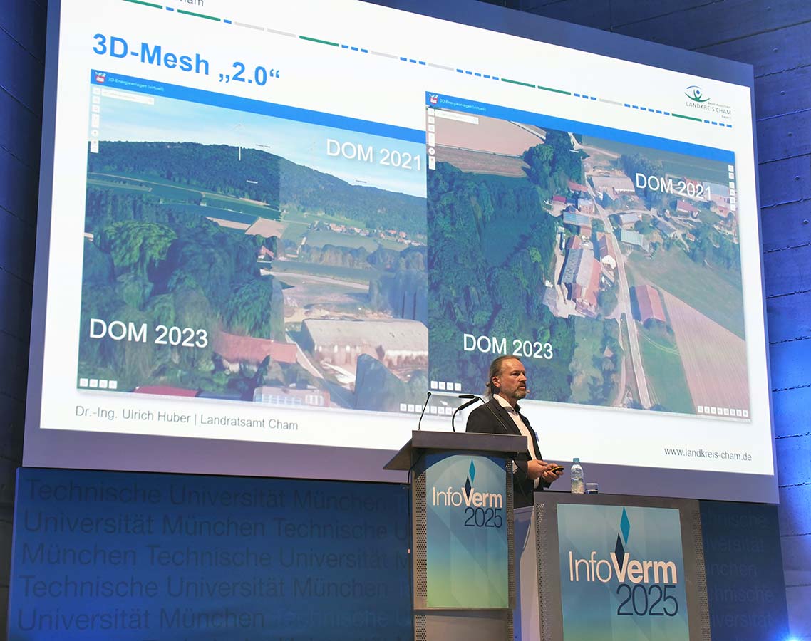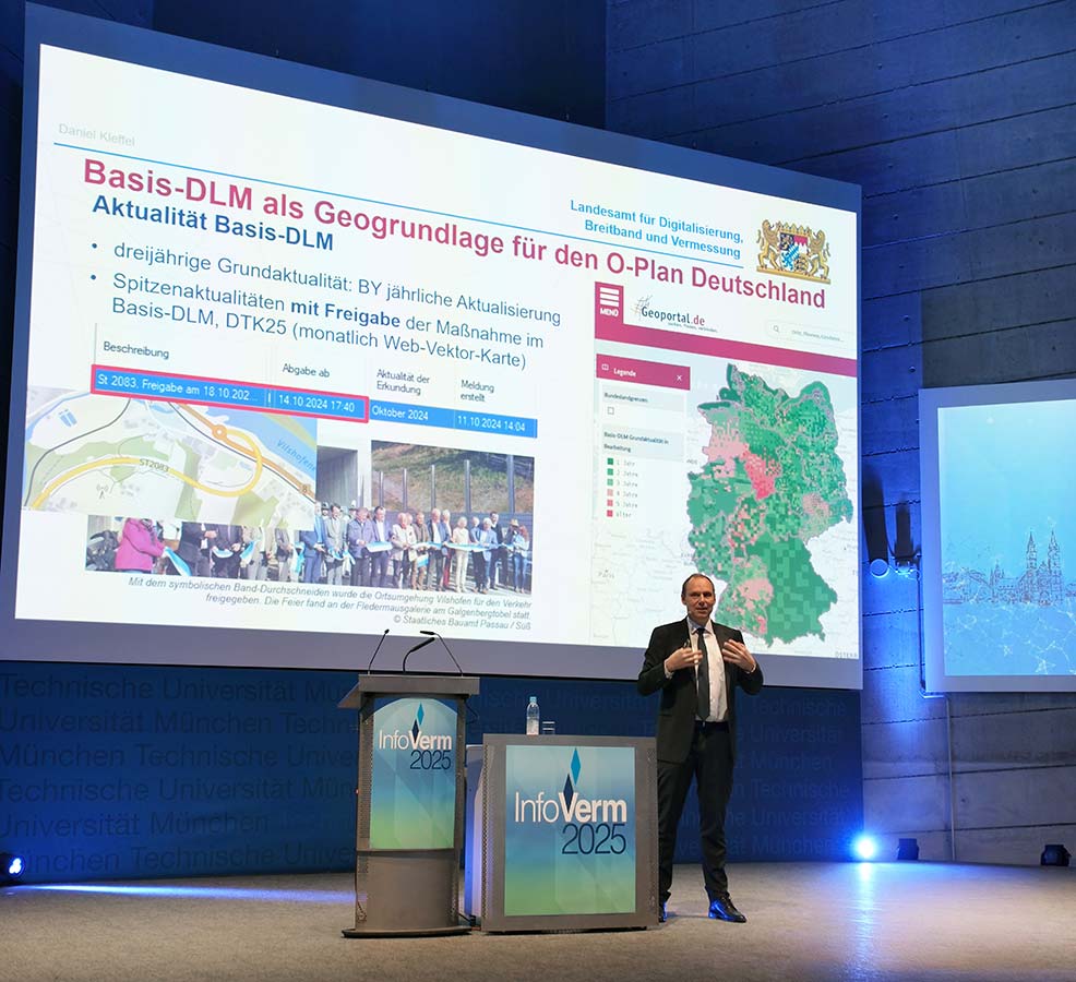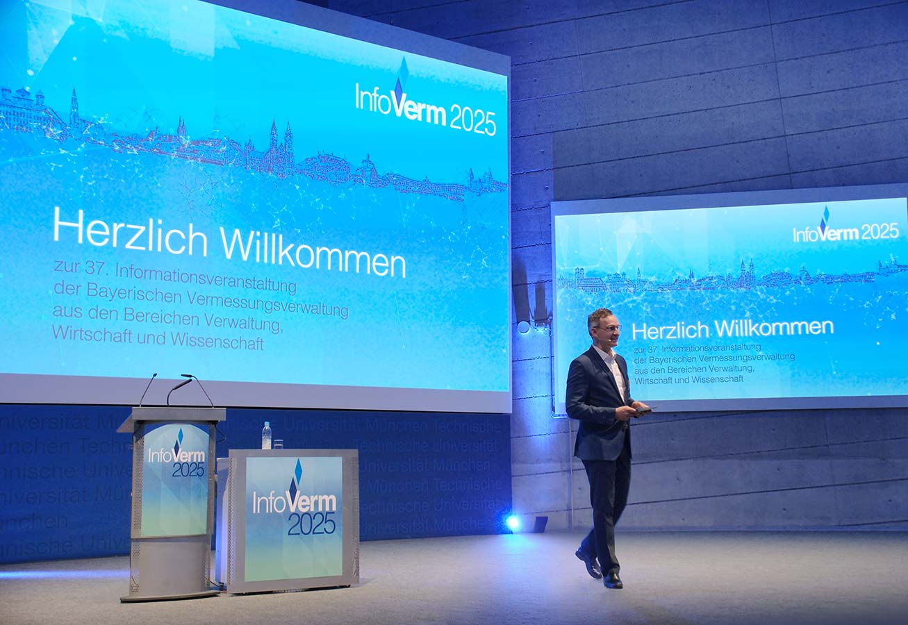 Am 3. April 2025 fand die 37. InfoVerm, die Informationsveranstaltung der Bayerischen Vermessungsverwaltung, im Audimax der TU München statt. Rund 500 interessierte Besucherinnen und Besucher aus Verwaltung, Wirtschaft und Forschung nahmen an der Veranstaltung teil und informierten sich über die neuesten Entwicklungen aus der Welt der amtlichen Geodaten.