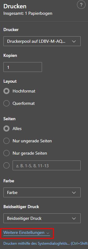 2. Rechte Maustaste drücken → Drucken oder Tastenkombination Strg + P