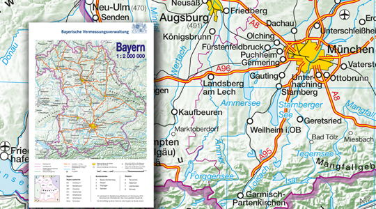 Gedruckte Übersichtskarten von Bayern im Maßstab 1:500 000